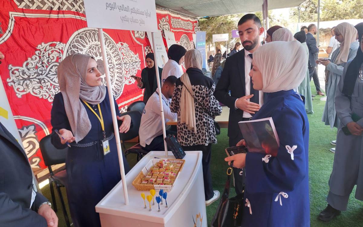 جانب من مشاركة البنك في فعاليات اليوم المصرفي المفتوح في جامعة القدس المفتوحة فرع يطا