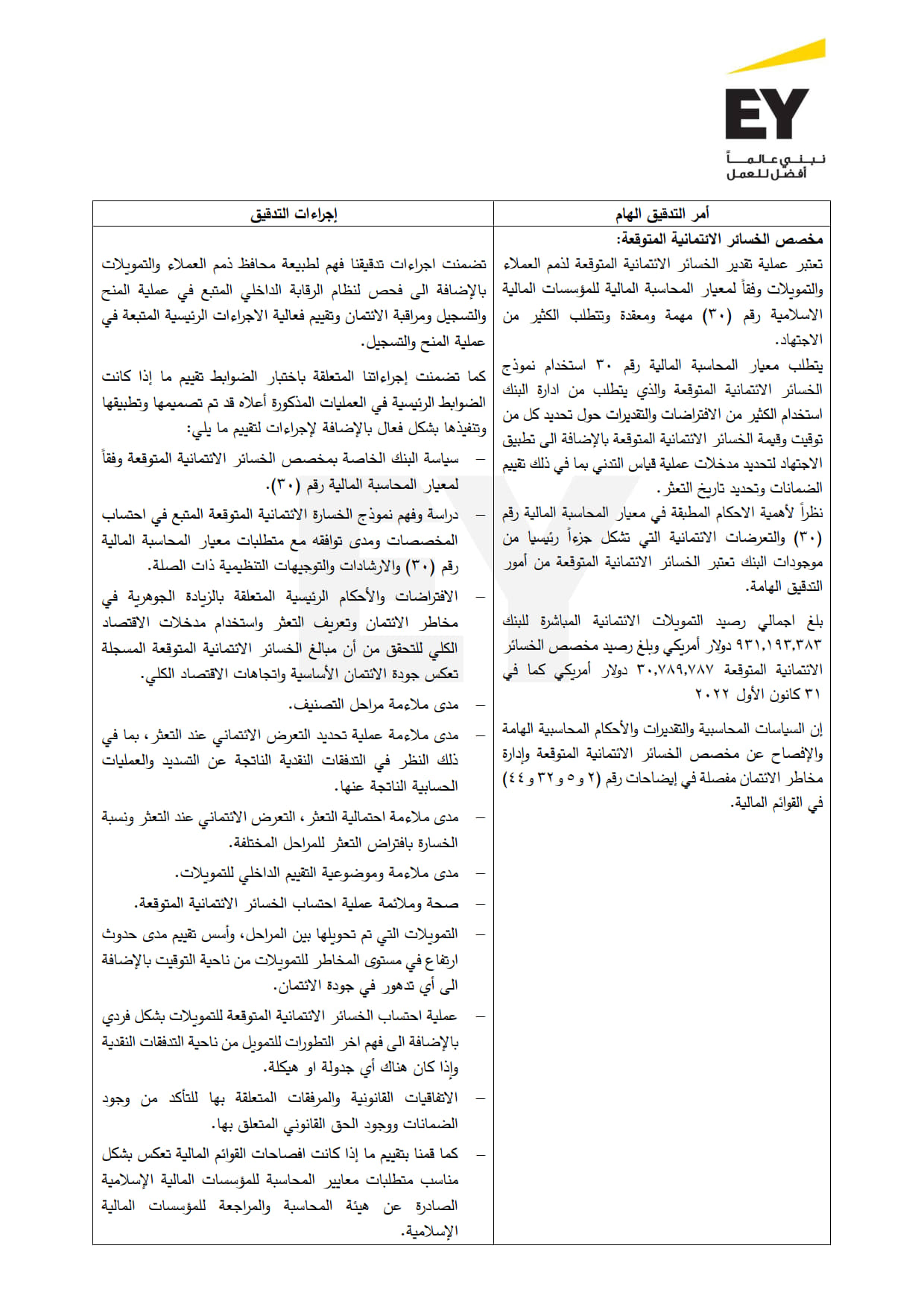 في العام 2021 الي 0.97 % في العام 2022، فيما سجل معدل العائد على حقوق الملكية ارتفاعاً من 10.45 % في العام 2021 الي 10.69% في العام 2022، كما سجل صافي التمويلات الائتمانية المباشرة ارتفاعاً ليصل إلى 898 مليون دولار أمريكي في 2022 وذلك صعوداً من 890 مليون دولار أمريكي في العام 2021 وبنسبة نمو بلغت 0.88% .